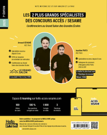 Joachim PINTO (HEC Paris) et Arnaud SÉVIGNÉ (HEC Paris) sont les 2 plus grands spécialistes des concours ACCES/SESAME. Conférenciers de concours Post-Bac dans plusieurs Grandes Ecoles (emlyon, SKEMA, etc.) et speakers au Grand Salon des Grandes Ecoles, ils ont préparé des milliers de candidats aux concours ACCES et SESAME. Enfin, ils sont les directeurs de l’institut de préparation aux concours de référence Hello Prépa : www.hello-prepa.com