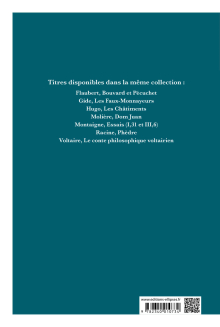 Titres disponibles dans la même collection : Flaubert, Bouvard et Pécuchet Gide, Les Faux-Monnayeurs Hugo, Les Châtiments Molière, Dom Juan Montaigne, Essais (I,31 et III,6) Racine, Phèdre Voltaire, Le conte philosophique voltairien LIRE LA SUITE
