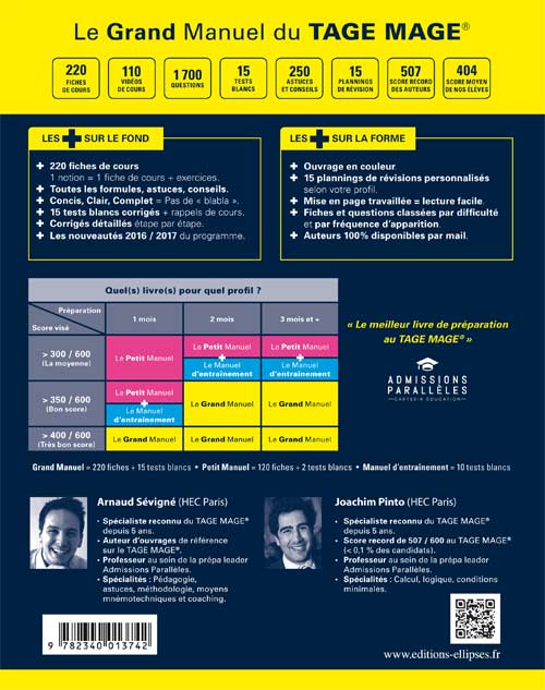 - Le Manuel de COURS du TAGE MAGE : 220 fiches + 2 tests blancs + 110 vidéos.